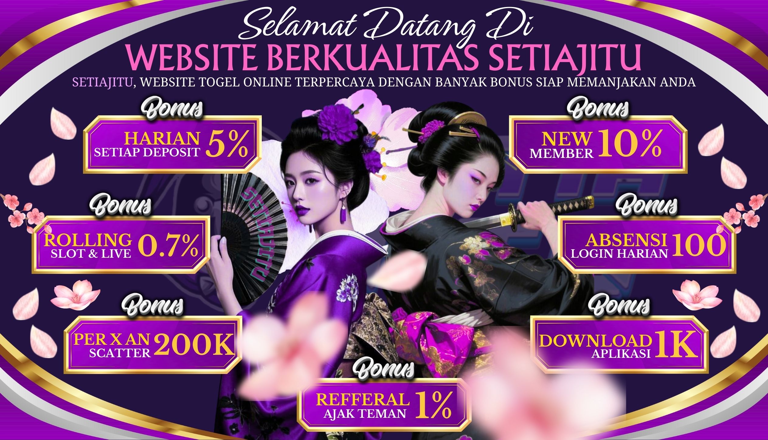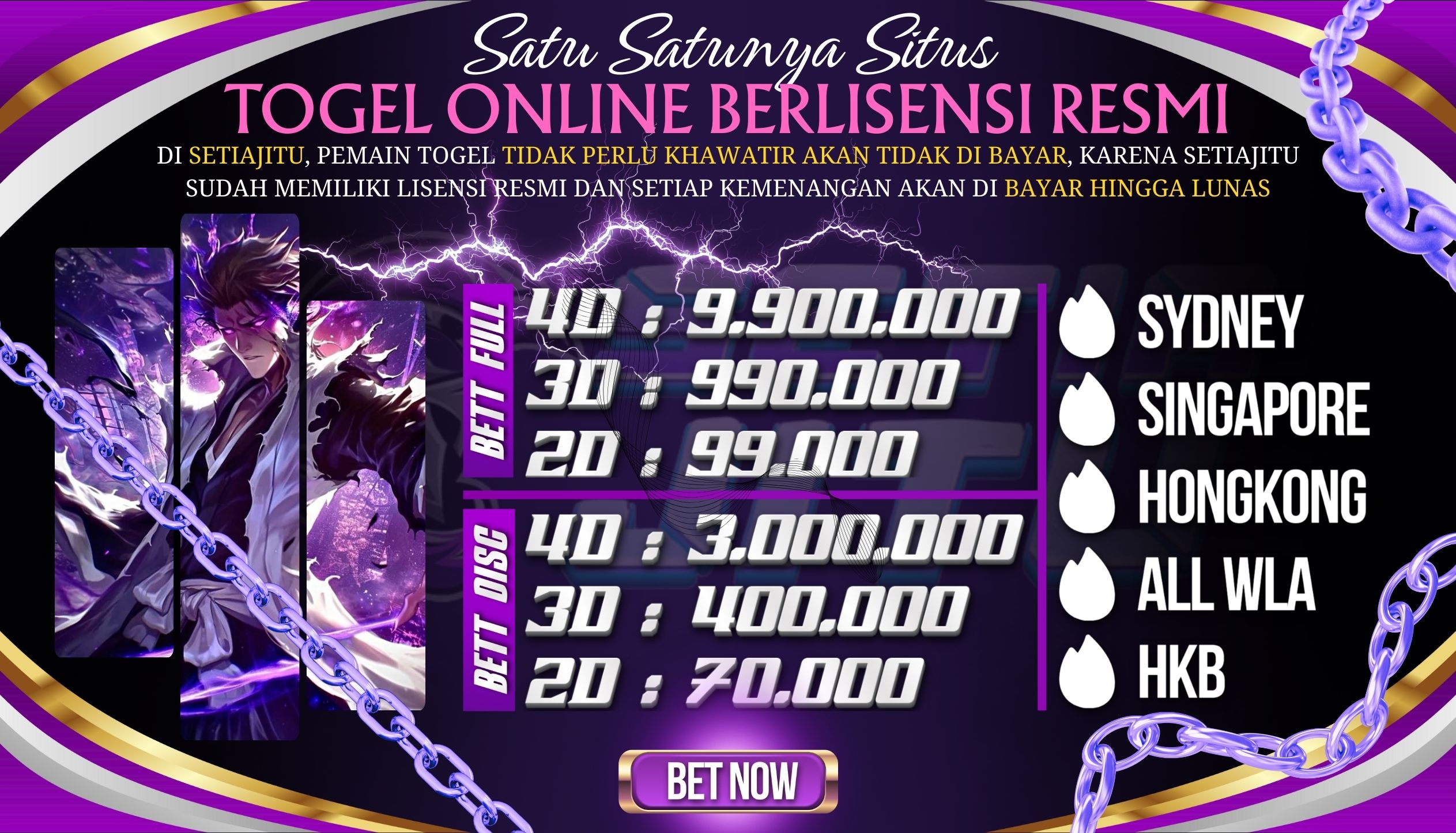 SELAMAT DATANG DI WEBSITE SETIAJITU, BANDAR ONLINE TERBESAR DAN TERPECAYA DI INDONESIA MENYEDIAKAN 50 PASARAN RESMI WLA DENGAN SISTEM TER UPDATE SERTA MUDAH UNTUK MENANG DI SETIAP PERMAINAN , MEMBER SETIAJITU WAJIB DOWNLOAD APLIKASI YANG DI SEDIAKAN SETIAJITU AGAR JIKA ADA KENDALA MENGALAMI KESULITAN AKSES DAPAT DI BANTU DENGAN CEPAT MELALUI APLIKASI SETIAJITU